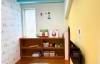 ブラックチェリー材をふんだんに使った打合せスペース、カタログサンプル帳を収納する大容量の本棚を設置