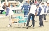 中学生レスキュー隊が、応急手当や担架搬送の実践を行っていました。
