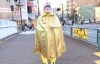 独特の衣装、メイクで方南町交差点に現れた権蔵さん。周囲も一気に注目。