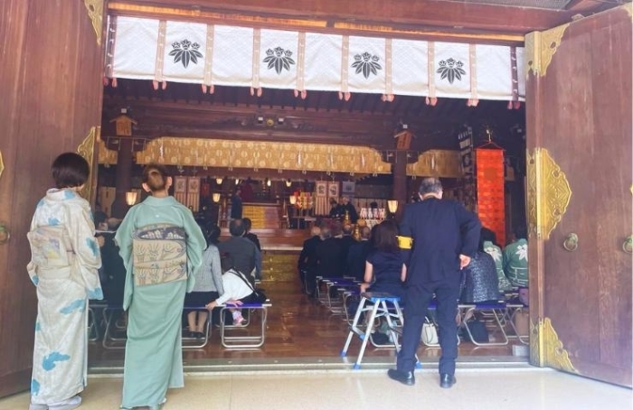 朝の「尚武祭」では、神職の祝詞とともに、皇室の弥栄や国家の隆昌、そして世界平和が祈願されました。