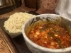 四川風に麻と辣ガッツリ利かせたつけ汁は燃えるように真っ赤な色。さらに通常より辛くしてくれたというから嫌が上にもテンションが上がります。