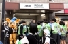 今回は沿線の高校の生徒や大学の学生達も参加。痴漢撲滅を訴えました。生徒や学生達にとっても痴漢のいない通学電車は心より願うところでしょう。安心・安全の日常のために自分達にもできることをと集まってくれました。若い世代の参加にピーボ君も大喜び。喜びすぎて疲れたのか各駅で休憩をとっていました(笑)。